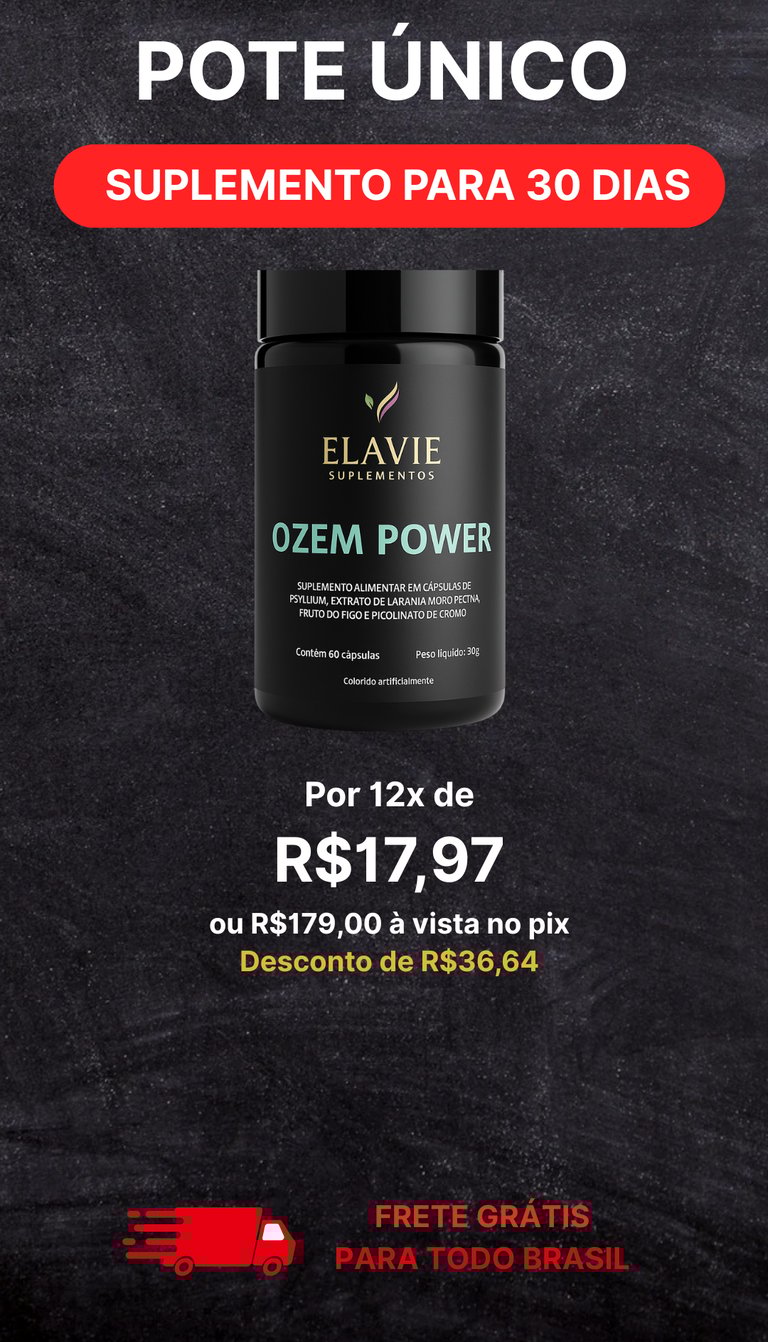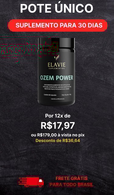 O Ozem Power é um suplemento alimentar desenvolvido para quem busca apoio no processo de perda de peso e controle do apetite de forma natural e segura.Sua composição exclusiva reúne ingredientes reconhecidos por seus benefícios: